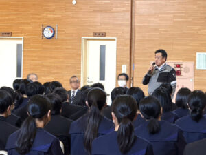 この行事は、生徒の皆さんが働くことの意義や職業の特色について学び、自身の将来について考える貴重な機会として、「電気のしごと」をテーマに講話を行いました。